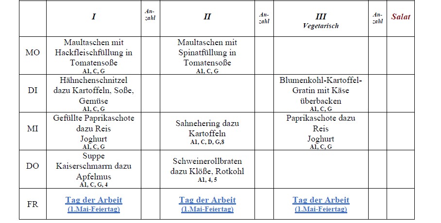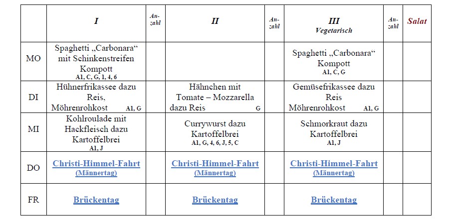 Speiseplan*: 04.05.2026 – 08.05.2026