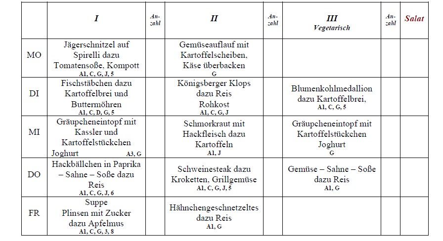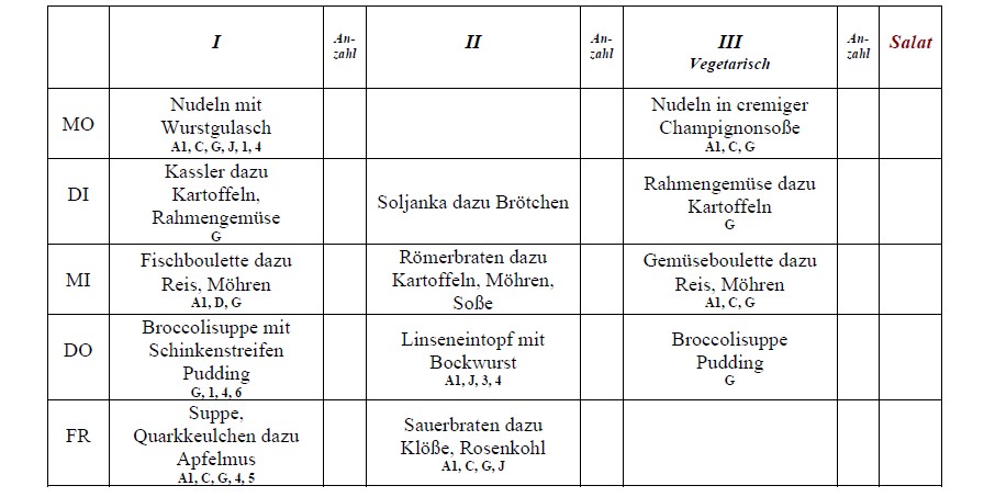 Abbestellungen sind bis 8.00 Uhr des Bestelltages möglich! Wir wünschen guten Appetit!